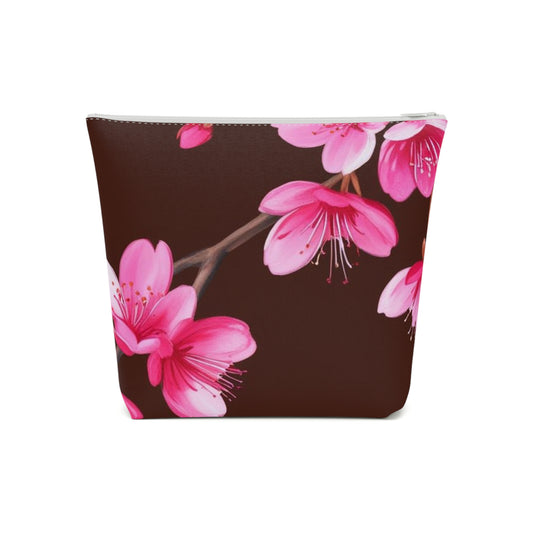 Borsa cosmetica in cotone con motivo floreale chic - Elegante design con fiori di ciliegio rosa